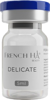 Klasični biorevitalizant za korekciju starosnih promena pod imenom DELICATE Hidratacija, sa terapeutskim efektom za periorbitalno deo lica, Korekcija znakova početnog starenja kože, za tanku kožu i kožu bez životnog sjaja. Sabijanje kože delikatnih delovima tela: perioralne i periorbitalne oblasti, čelo, vrat, dekolte, ruke. Tanka, koža lica ramena, bokova bez životnog sjaja. Natrijum hijaluronat 7 mg/ml, 3,1 milion Da, hidrolizovan kolagen, Hidrolizovani elastin 5 ml, bočica |